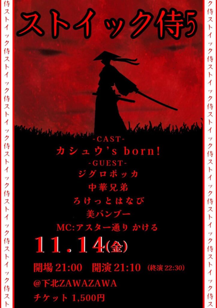 ろけっとはなび出演!下北zawazawaにて開催されるお笑いライブ「ストイック侍5」の詳細はこちら。